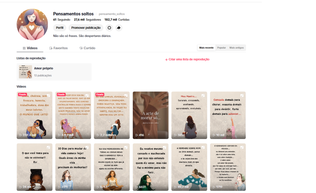 Perfis que postam frases fortes, reflexões profundas e mensagens motivacionais têm grande potencial de viralização.